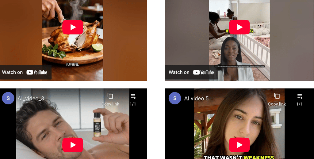 Short-form videos, UGC content, AI-generated videos, and social media assets that support consistent content production.